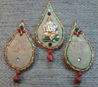 This pair of decorative artifacts symbolize blessings of lord Ganesha and Goddess lakshmi. This is stuck on entrance of prayer room or home.